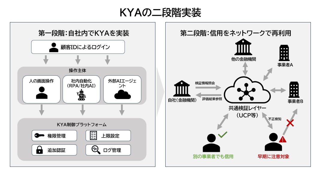 本稿では、KYAの実装を「自社内で土台を作る段階」と「外部も含めて信用を再利用する段階」の二段階で整理します。